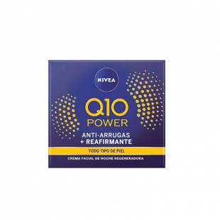 INTRODUÇÃO BREVE: O Creme Facial Nivea Q10 Power Anti-Idade Noite 50ml é formulado para todos os tipos de pele, ajudando a reduzir rugas, firmar a pele e fornecer hidratação intensa durante o período noturno, estimulando a regeneração natural da pele.