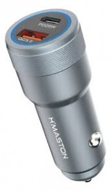 Fonte veicular H'Maston L07, na cor cinza, que possui carregamento rápido e múltiplas portas de saída.