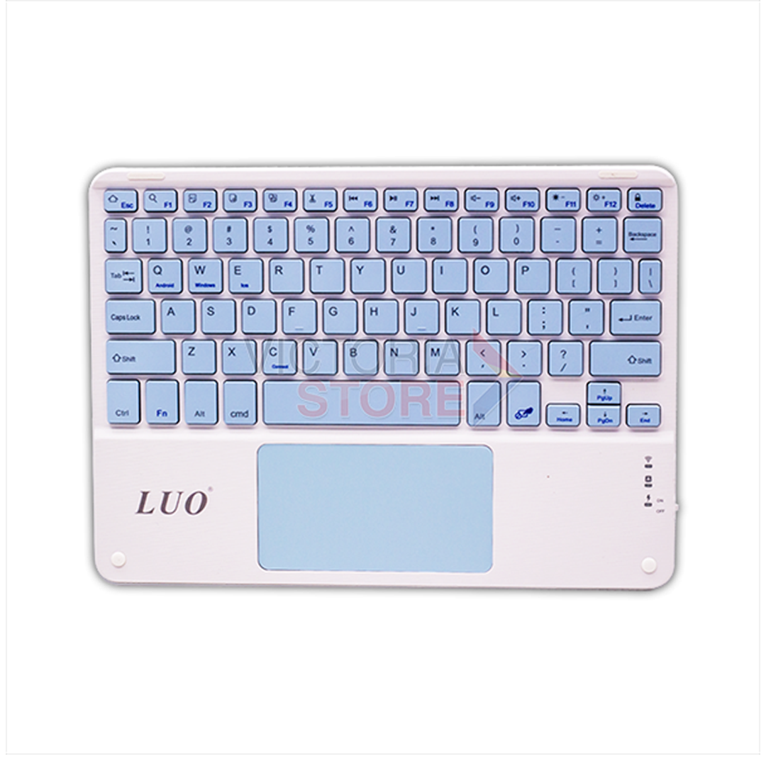 El teclado LUO LU-BT031 Blanco/Azul es una solución inalámbrica elegante y compacta diseñada para tablets (y otros dispositivos compatibles) que combina conectividad Bluetooth, diseño ultra-delgado y un acabado moderno en tonos blanco con azul, ideal para quienes buscan estilo y funcionalidad en un accesorio ligero.