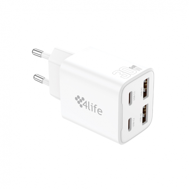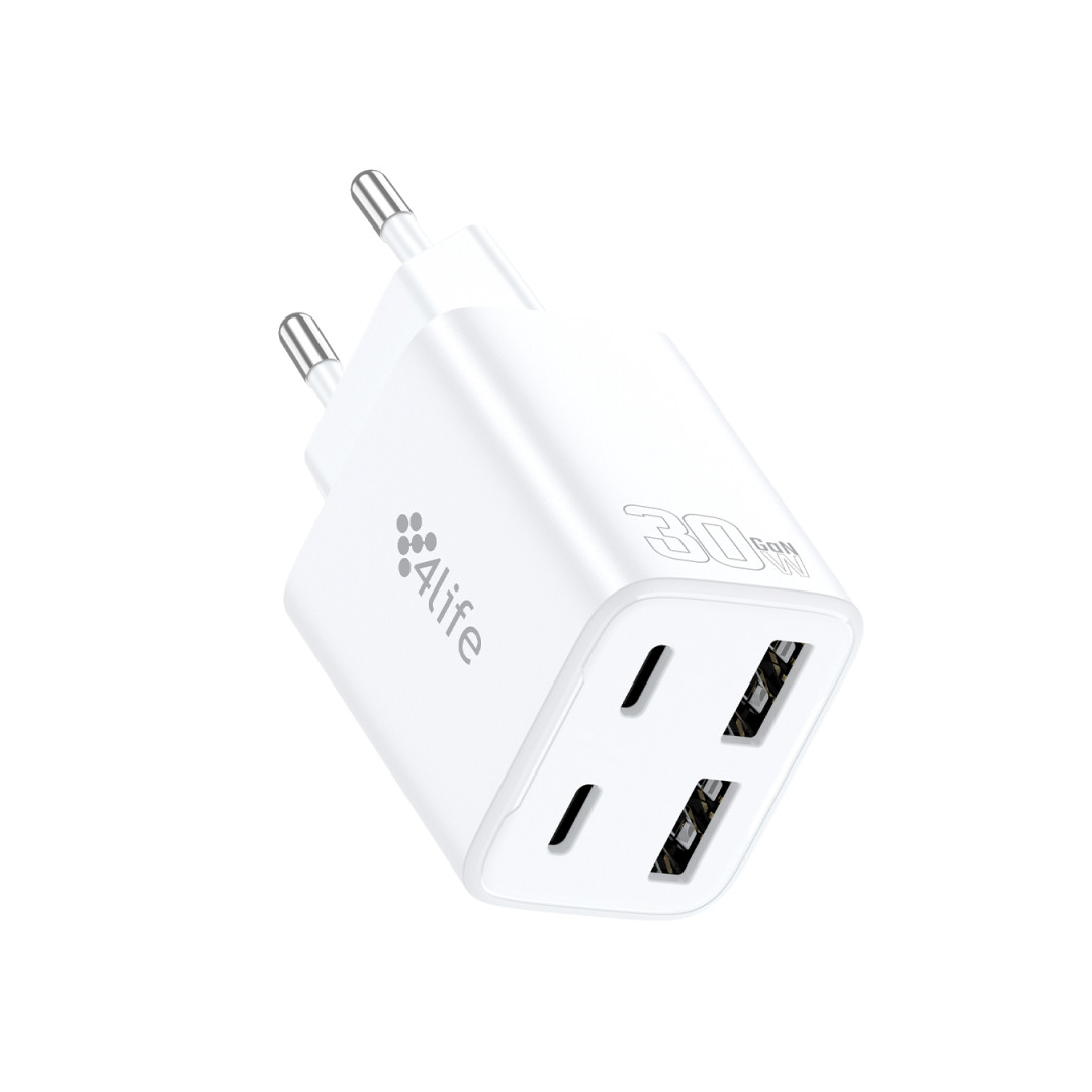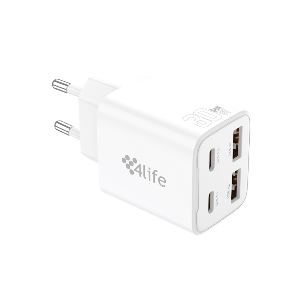 ACESSÓRIO CELULAR FONTE 4 LIFE FL94302XACW 2 USB + 2 ESB-C 30W BRANCO