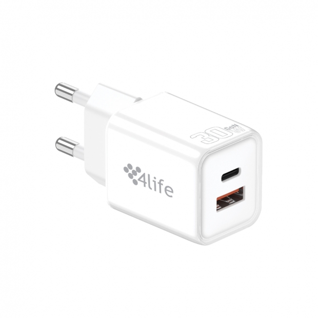 ACESSÓRIO CELULAR FONTE 4 LIFE FL9530ACGW 1 USB + 1 ESB-C 30W BRANCO