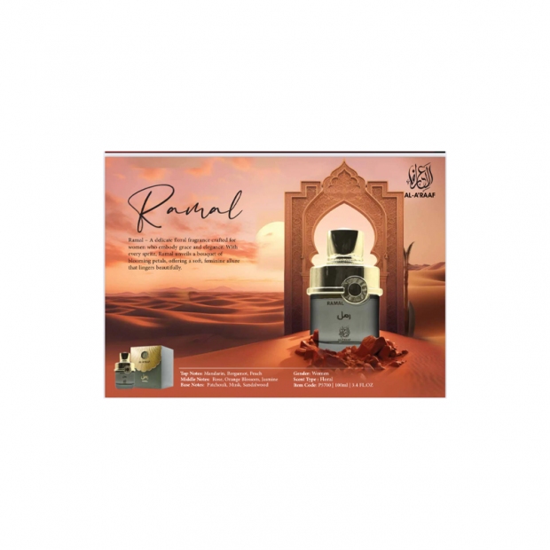 A marca Al A'Raaf Perfumes, símbolo de luxo e tradição árabe, é conhecida por suas criações exclusivas que unem arte, elegância e intensidade. O Ramal Men representa o homem moderno e determinado, que conquista com sua presença firme e carisma natural. Seu frasco escuro e sofisticado reflete mistério, confiança e poder, características que definem a essência dessa fragrância.