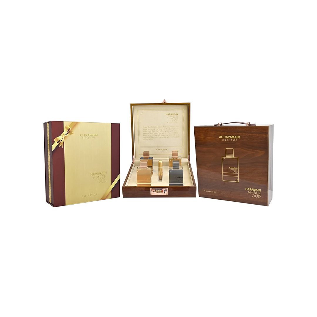 A Haramain é uma casa de perfumaria inspirada nas tradições orientais, reconhecida por criar fragrâncias intensas e ricas em caráter. A Amber Oud Collection reúne perfumes que exploram o universo das notas amadeiradas, orientais e ambaradas, proporcionando um repertório aromático versátil e sofisticado para diferentes personalidades e estilos de uso.