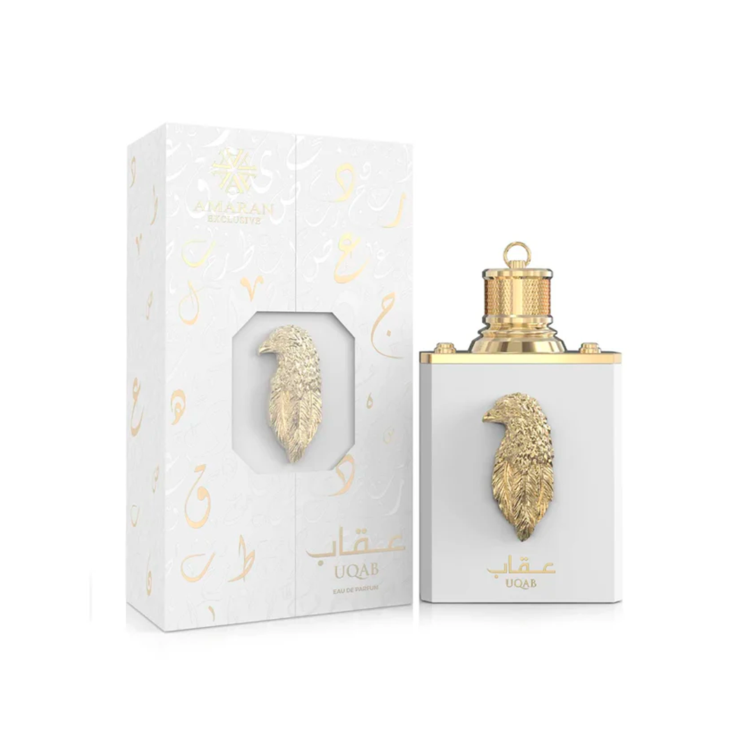 "Uqab" significa "Águia" e "Rihla" significa "Jornada". O conceito deste perfume é a "Jornada da Águia", evocando uma sensação de liberdade, visão e poder. A Amaran Esclusive é uma marca de perfumaria árabe (dos Emirados Árabes) focada em criar experiências de luxo. Seu diferencial é reinterpretar famílias olfativas clássicas com a intensidade e a riqueza das matérias-primas orientais.