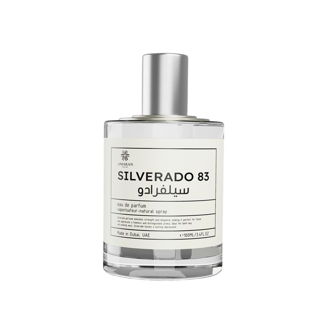 A Amaran é uma casa de fragrâncias de Dubai (Emirados Árabes Unidos) focada em criar perfumes de nicho luxuosos e acessíveis. O conceito da marca é capturar a "radiância vibrante" e o estilo clássico. O Silverado 83 foi projetado para o homem que comanda atenção sem esforço, misturando a profundidade das madeiras com o toque refinado da íris e do couro.