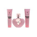 O kit Thank U Next reúne a fragrância feminina em 100 ml com itens complementares de cuidado corporal (loção e gel de banho 100 ml cada) — ideal para quem quer uma experiência completa de perfumação + cuidado. A fragrância reflete um estilo jovem, divertido e empoderado.