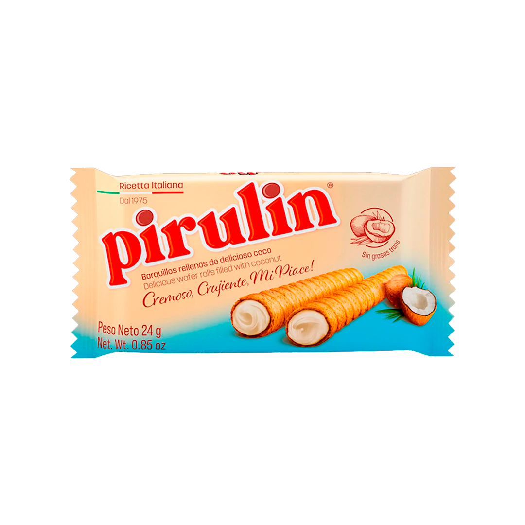 BARQUILLOS RECHEADOS PIRULIN COCO 24G