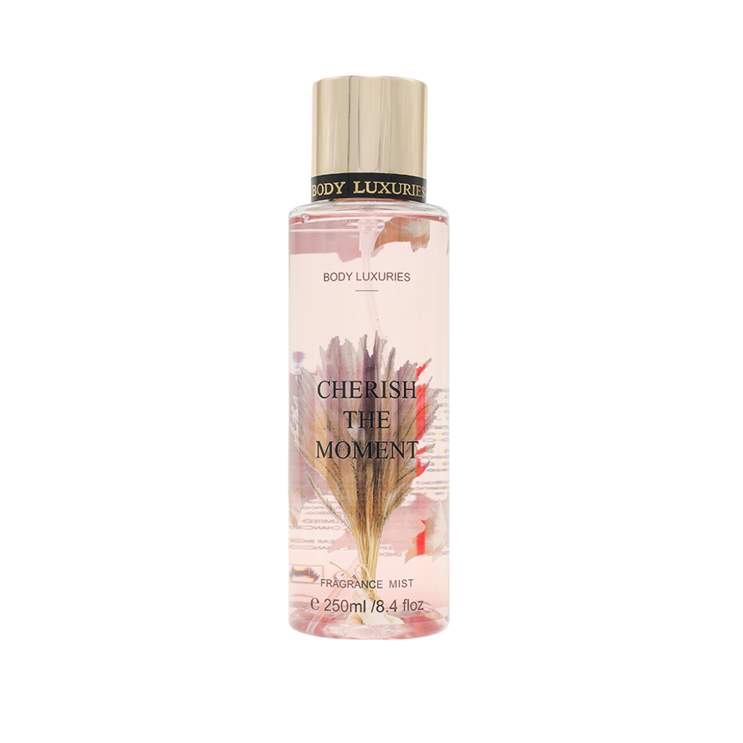 Esta edição da marca Body Luxuries surge com a proposta de transformar pequenos momentos em lembranças preciosas — “Cherish the Moment” sugere valorizar o presente com uma fragrância que exprime feminilidade e presença sutil. O formato compacto de 30 mL permite levar em bolsas ou usar como fragrância de toque rápido.