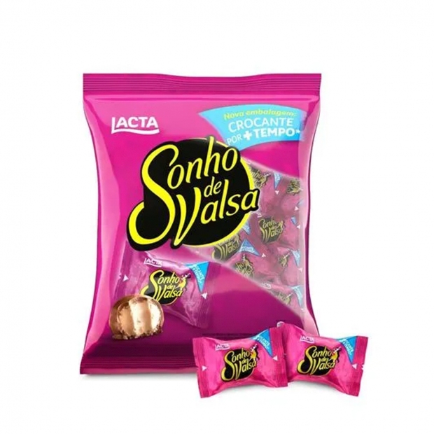 Clássico e irresistível, o Bombom Lacta Sonho de Valsa é uma das mais tradicionais delícias do chocolate brasileiro, conhecido por sua combinação inconfundível de sabores e texturas. Cada bombom traz um recheio cremoso e aveludado de castanha de caju e amendoim envolto por uma fina camada de wafer crocante, coberta por um delicioso chocolate ao leite Lacta. Essa união cria uma experiência equilibrada entre suavidade, crocância e doçura, resultando em um sabor marcante e envolvente que agrada a todas as idades.