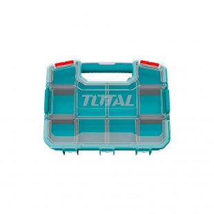 O organizador de ferramentas plásticas Total TPBX1151 apresenta uma construção robusta com cantos reforçados para uso a longo prazo, reduzindo o risco de acidentes. Espaço interior espaçoso com uma variedade de compartimentos e gavetas para organizar ferramentas, reduzindo o risco de desordem e tropeços. Alça de transporte e trava integradas para facilitar o transporte, promovendo um transporte seguro e eficiente.