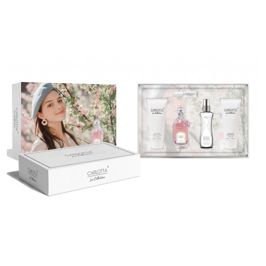 A linha Cherry Avenue de Carlotta é uma fragrância feminina inspirada nas notas florais e frutais, com toques delicados de chá verde e cereja. O kit de 5 peças permite que você experimente a fragrância em diferentes formatos e intensidades, sendo ideal para o uso diário ou para presentear alguém especial.