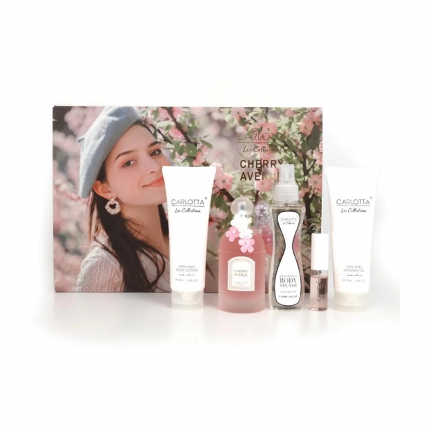 O kit Carlotta Cherry Avenue (5 peças, feminino) é um conjunto sofisticado, ideal para mulheres que buscam uma experiência completa de fragrância e cuidados. Ele inclui diferentes formatos da linha Cherry Avenue, permitindo usar o perfume em várias ocasiões e prolongar o aroma durante o dia.