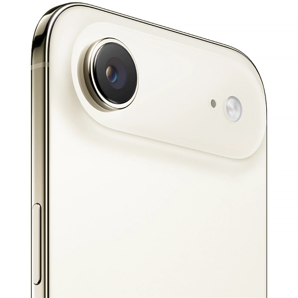 Design: Com apenas 5,6 mm de espessura e pesando 165 g, o iPhone 17 Air é o mais fino da linha. A estrutura é feita de titânio de grau 5 (com 80% de material reciclado), conferindo durabilidade e leveza. A cor Light Gold (ouro-claro) é uma das quatro opções de cor disponíveis para o modelo.