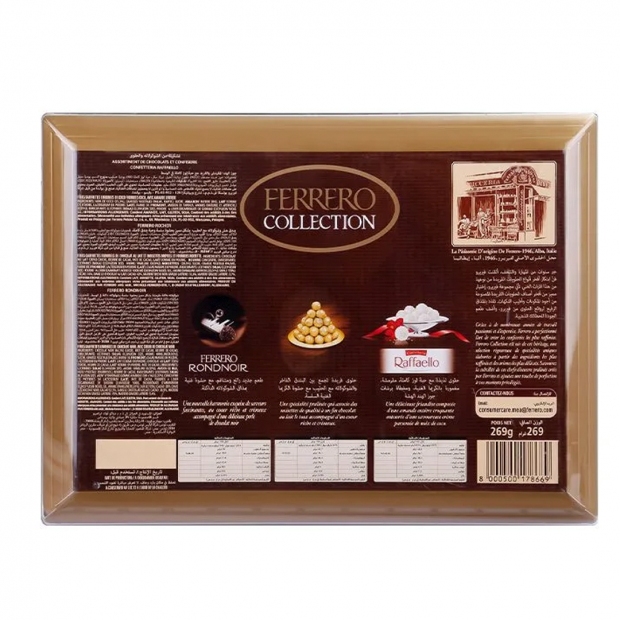 O conjunto normalmente inclui os clássicos Ferrero Rocher, Ferrero Rondnoir e Ferrero Raffaello, permitindo que cada mordida seja única: do chocolate ao leite com avelã inteira ao sabor intenso do chocolate amargo, passando pelo delicado creme de coco. A apresentação elegante torna a Ferrero Collection ideal para presentes, comemorações ou momentos de indulgência pessoal.
