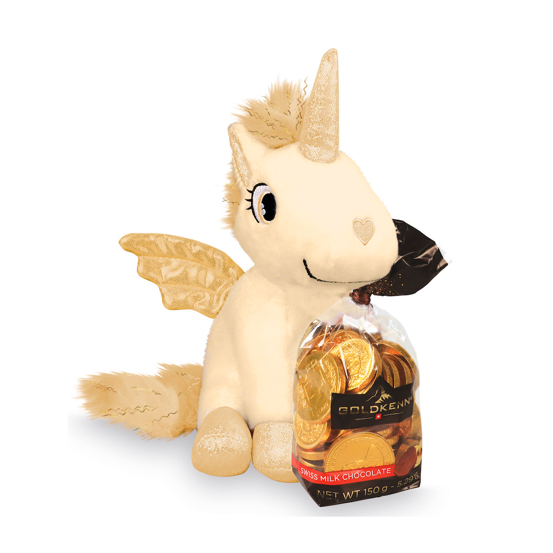 O Chocolate Goldkenn Unicórnio apresenta uma embalagem encantadora, perfeita para presentear ou para um momento especial.