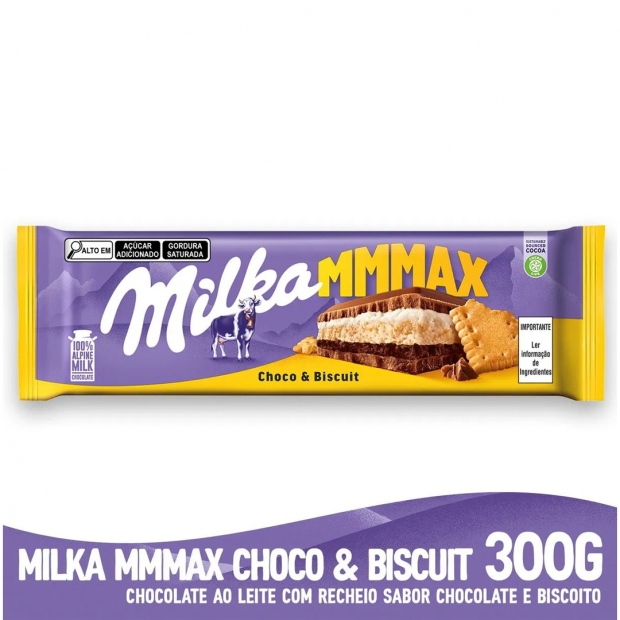 Doces e petiscos, ChocolatesCHOCOLATE MILKA CHOCO & BISCUIT BARRA 300G