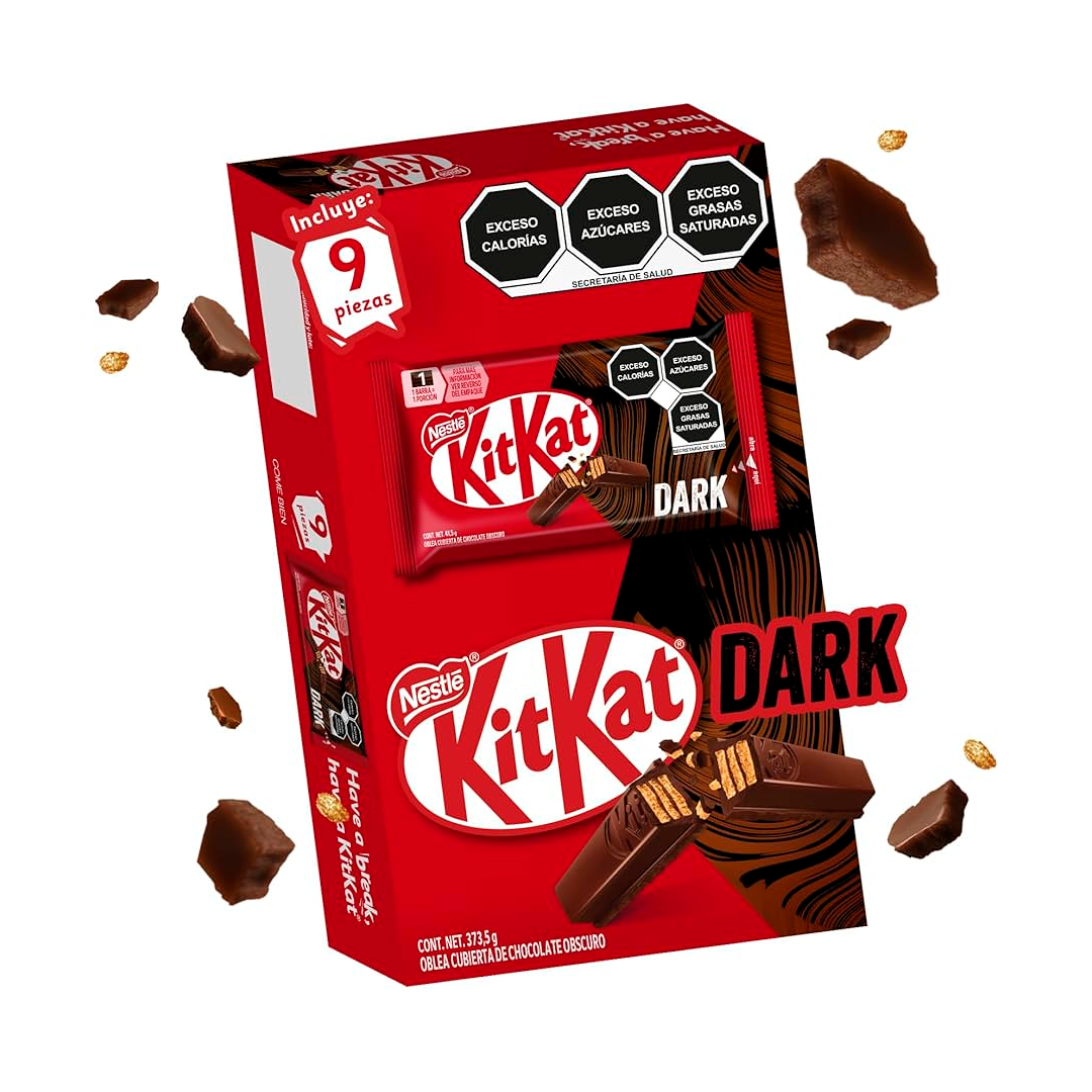 A barra Kit Kat Dark 373,5 g representa uma versão mais intensa e sofisticada do clássico wafer da marca. Com 9 unidades de chocolate de alta qualidade, combinando o couro crocante do wafer com cobertura de chocolate meio-amargo (dark), ela oferece uma experiência de sabor mais marcante e elegante.