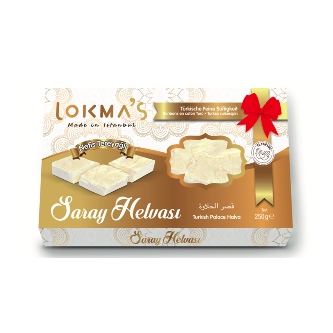 Lokmas Saray Helvasi é uma marca tradicional da Turquia, especializada na produção de helvas e doces artesanais de alta qualidade. A helva branca, com sua textura macia e sabor suave, é uma das mais populares no Oriente Médio, e a adição do chocolate branco traz um toque moderno e delicioso à receita clássica.