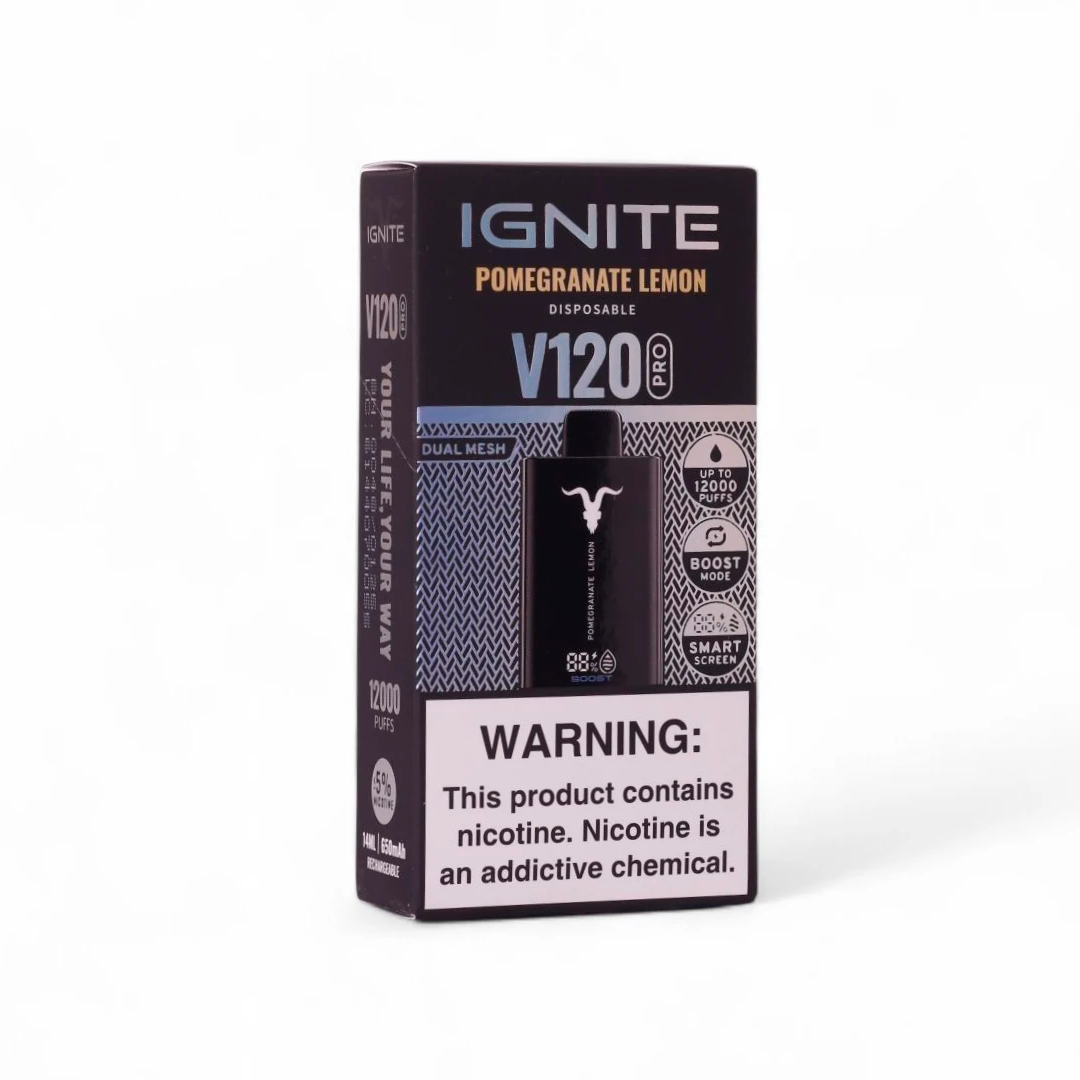 A Ignite é uma marca global de lifestyle associada a um estilo de vida premium e ousado. No mundo vaping, ela se destaca por oferecer dispositivos com design moderno e sabores intensos. O V120 Pro representa o ápice da linha descartável da marca, focando em entregar a máxima durabilidade (12.000 puffs) e tecnologia aprimorada para uma experiência vaping superior e prática. O sabor Pomegranate Lemon foi criado para oferecer uma alternativa sofisticada e refrescante aos sabores tradicionais.