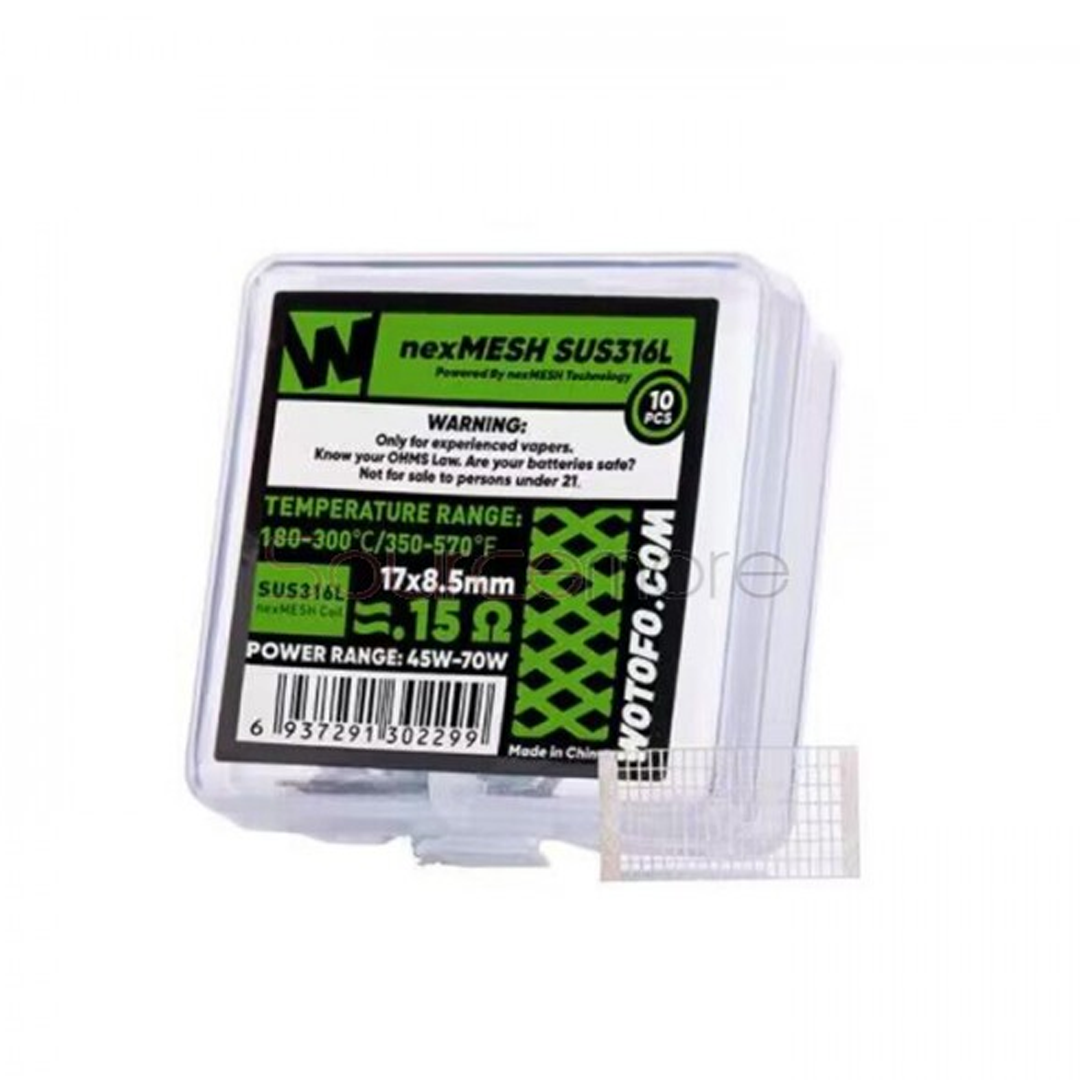 Essa linha de mesh da Wotofo representa a evolução das resistências tradicionais, convertendo a malha entrelaçada em área de aquecimento expansiva, o que resulta em aquecimento mais rápido, melhor sabor e menos "spit-back". O material SUS316L permite também o uso em modo TC (Controle de Temperatura), oferecendo mais controle e versatilidade para quem procura performance avançada.
