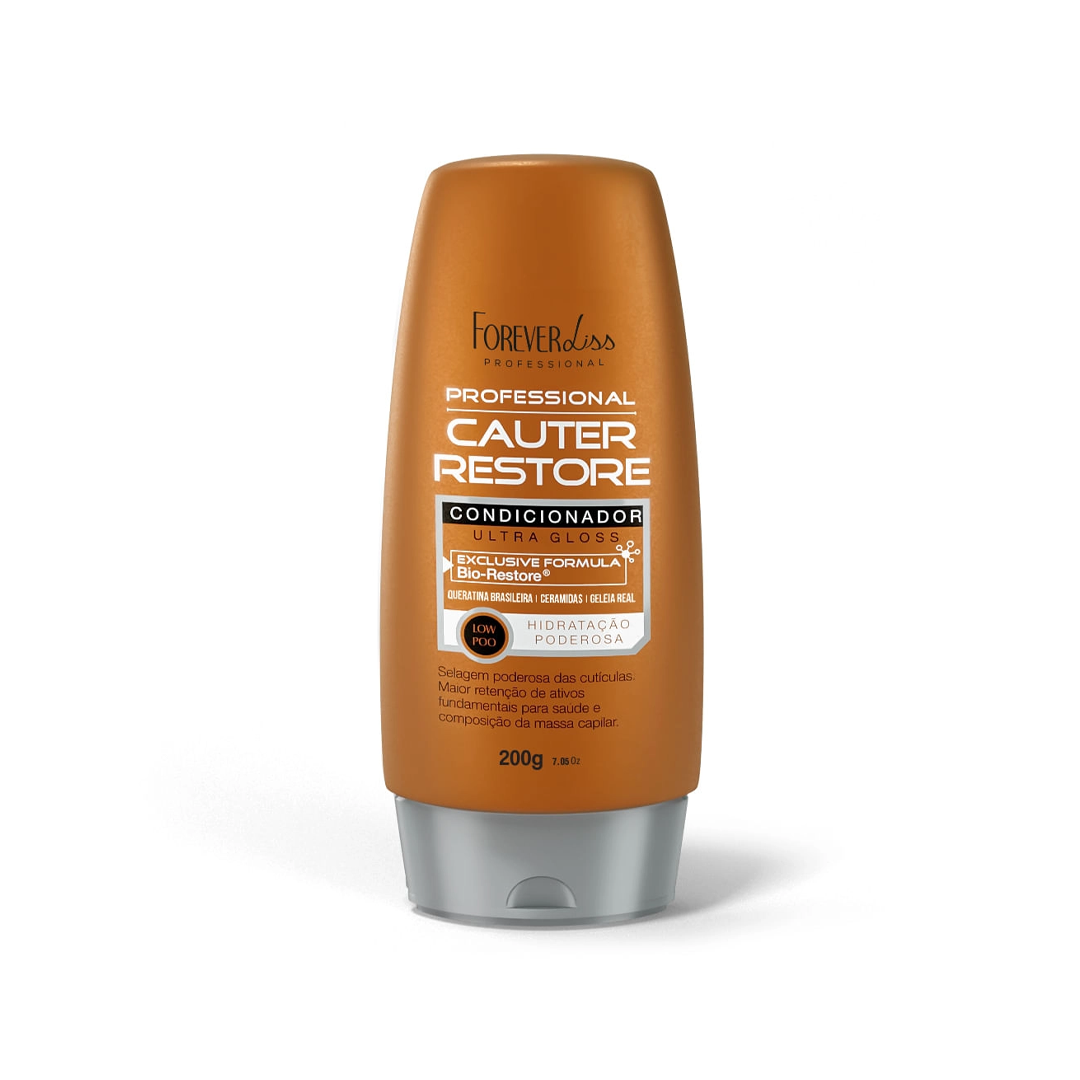 O Condicionador Forever Liss Cauter Restore (200 g) é um tratamento intensivo desenvolvido para restaurar cabelos danificados por processos químicos, proporcionando hidratação, fortalecimento e brilho, além de promover a selagem das cutículas capilares.