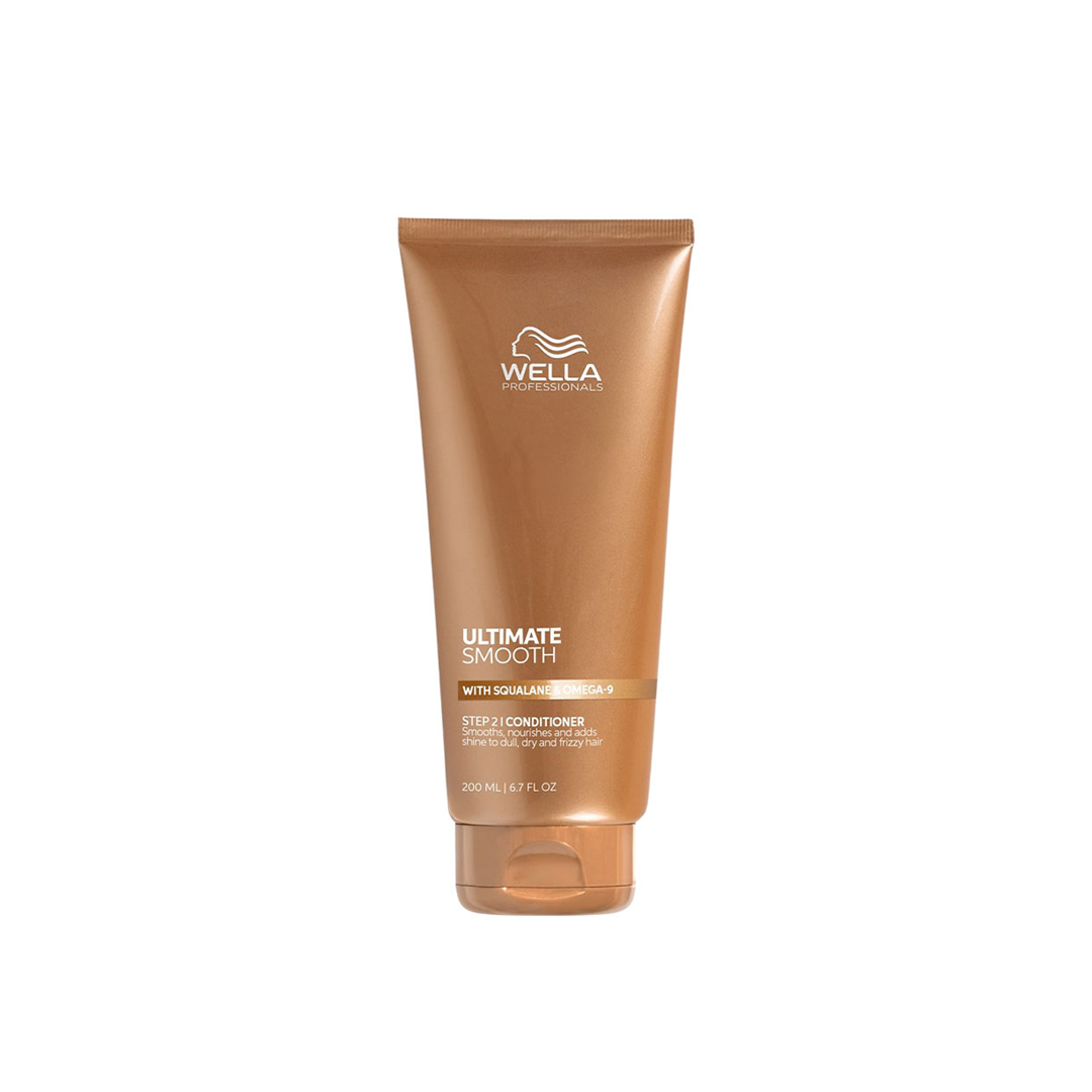 O condicionador Wella Ultimate Smooth 200 ml foi desenvolvido para cabelos secos, frisados ou com frizz persistente, proporcionando nutrição interna e acabamento sedoso desde a primeira aplicação.