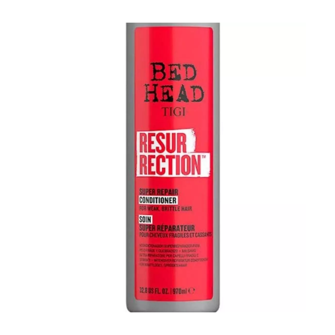 O condicionador TIGI Bed Head “Resurrection” (970 ml) é um tratamento intenso, criado para cabelos muito danificados ou quebradiços, oferecendo reconstrução profunda e aparência revitalizada.