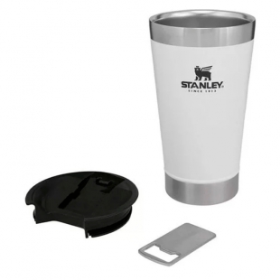 COPO TERMICO STANLEY CLASSIC BEER PINT BRANCO 473ML COM TAMPA E ABRID*