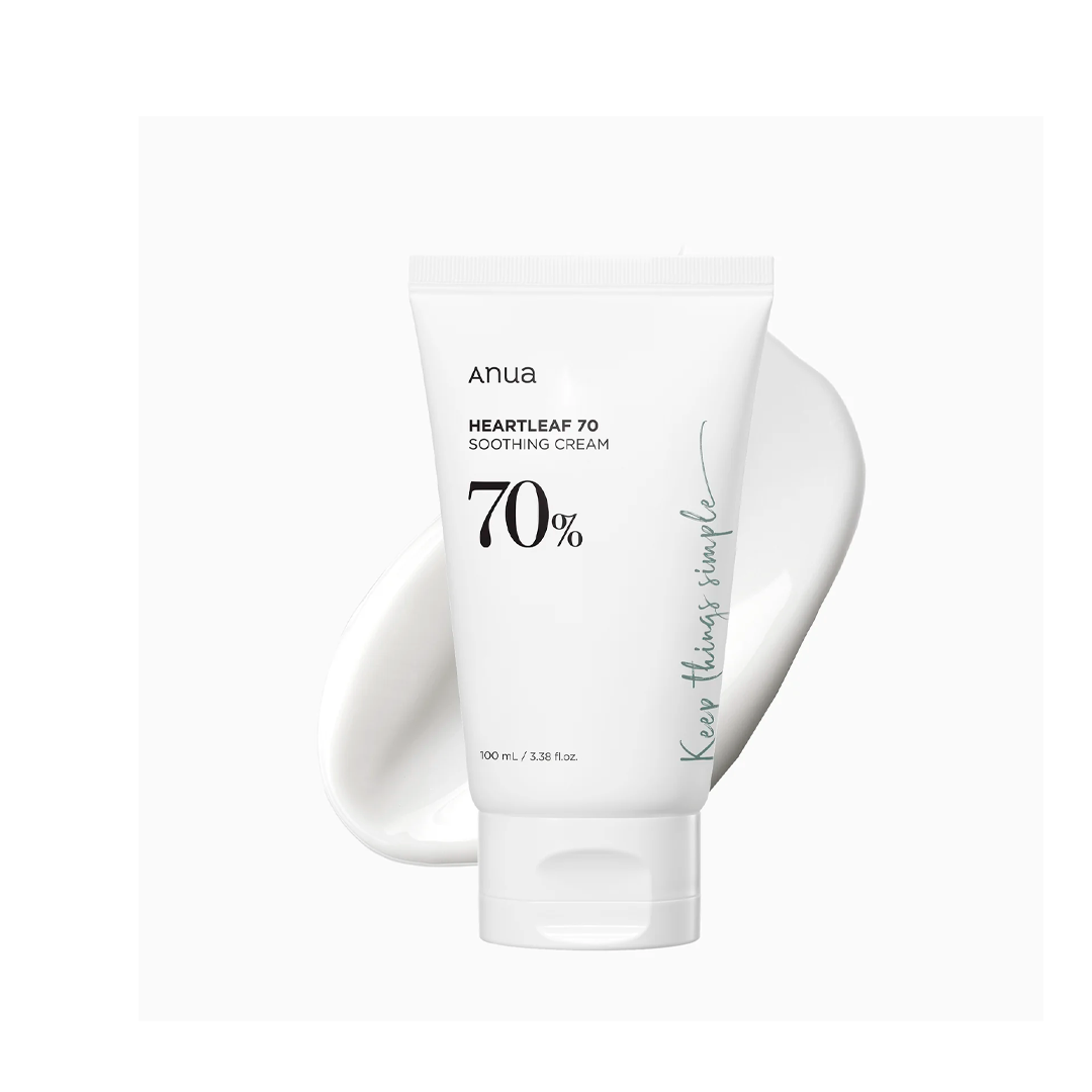 O Anua Heartleaf 70 Soothing Cream é um hidratante facial desenvolvido para acalmar e hidratar peles sensíveis ou irritadas. Sua fórmula contém 70% de extrato de Houttuynia Cordata, também conhecida como Heartleaf, reconhecida por suas propriedades calmantes e anti-inflamatórias. Ideal para uso diário, este creme proporciona alívio imediato, reduz a vermelhidão e fortalece a barreira cutânea.