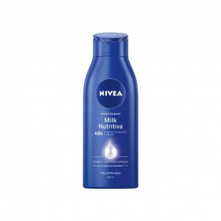 Introdução breve: O Creme Corporal Nivea Milk Nutritiva Pele Extra/Seca 400ml foi desenvolvido para proporcionar hidratação profunda e intensa em peles muito secas ou ressecadas. Sua fórmula rica em nutrientes e leite hidratante ajuda a restaurar a maciez, suavidade e elasticidade da pele, deixando-a nutrida, confortável e com aspecto saudável. Ideal para uso diário, atua prevenindo o ressecamento e proporcionando toque sedoso por longos períodos.