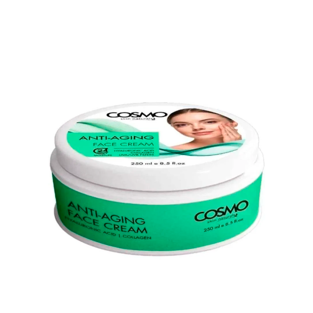 O Creme Facial Cosmo Anti-Aging Face Cream 250 ml foi desenvolvido para combater os sinais visíveis do envelhecimento, como linhas finas, rugas e perda de firmeza, enquanto oferece hidratação profunda e proteção contra danos externos. A fórmula combina antioxidantes, vitaminas e extratos naturais para deixar a pele com aparência mais jovem e radiante.