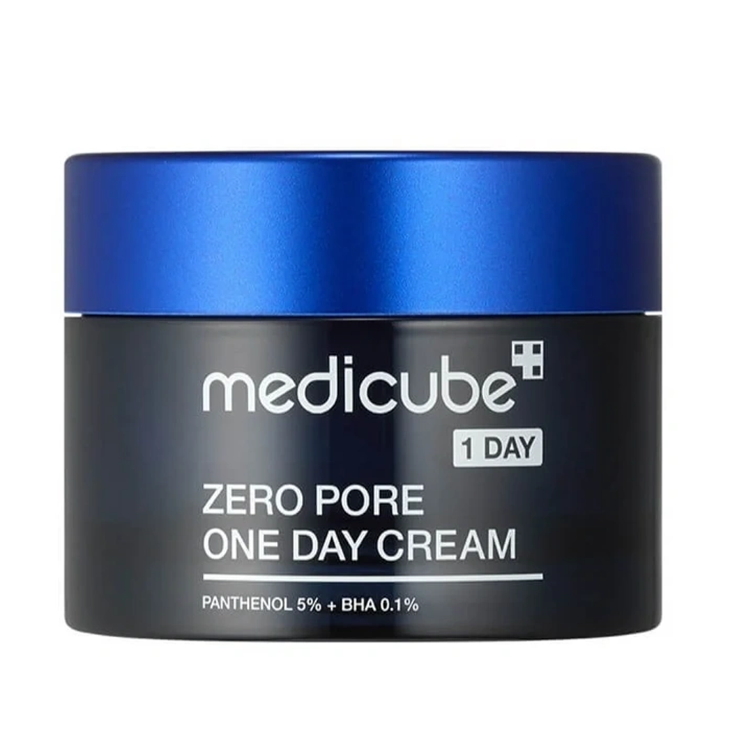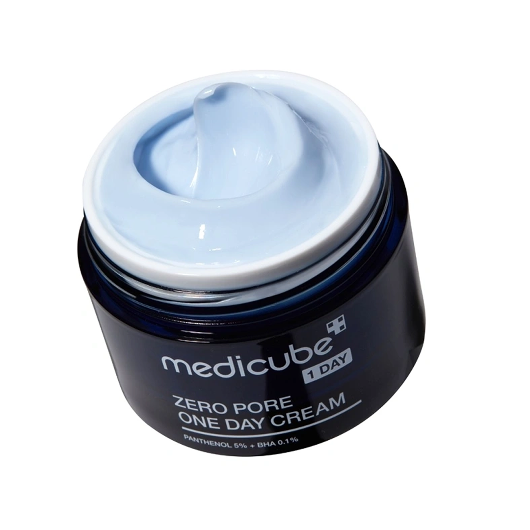 A linha Zero Pore da Medicube foi criada para cuidar de peles oleosas e com poros dilatados, unindo ciência dermatológica e tecnologia coreana. O One Day Cream possui textura leve e fórmula que atua rapidamente, proporcionando sensação de frescor e toque aveludado na pele.