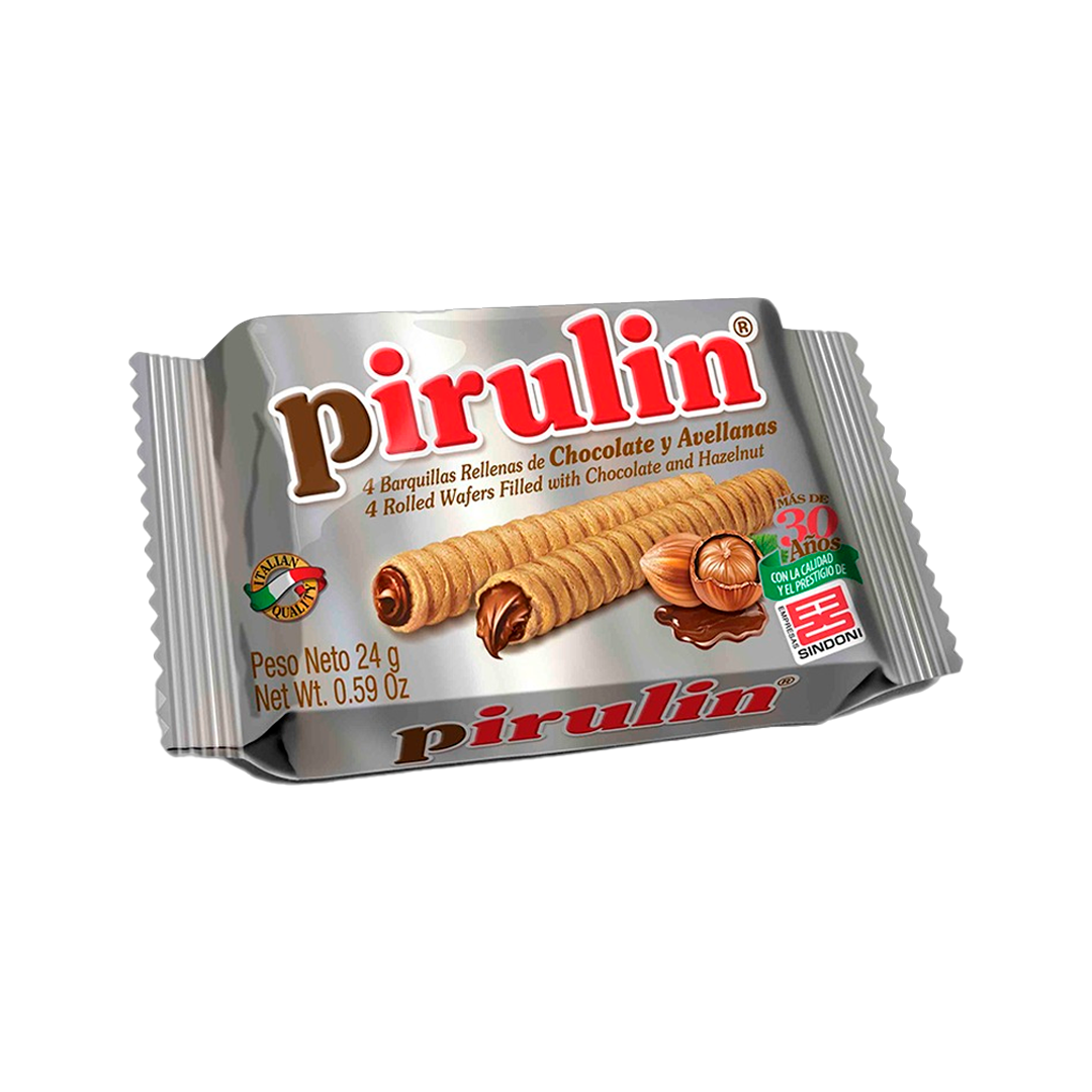 Os barquilhos recheados Pirulin oferecem uma combinação perfeita de crocância e cremosidade, com um recheio delicioso de chocolate e avelã.