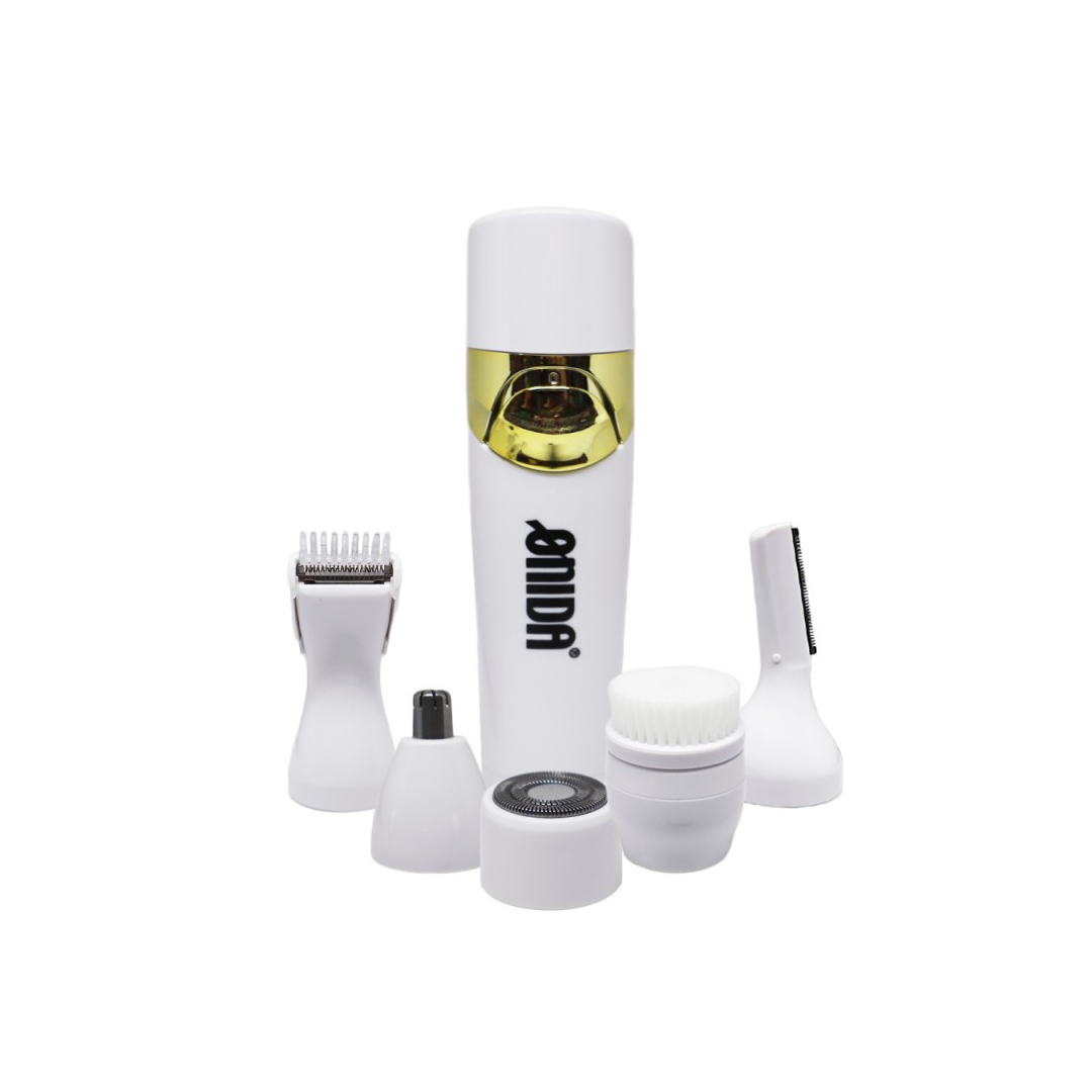 O Depilador Onida ON-2225 5 em 1 é um dispositivo multifuncional projetado para cuidados pessoais completos. Com cinco cabeçais intercambiáveis, oferece soluções práticas para depilação facial, modelagem de sobrancelhas, corte de pelos nasais, limpeza facial e aparo do corpo, tudo em um único aparelho compacto e ergonômico.