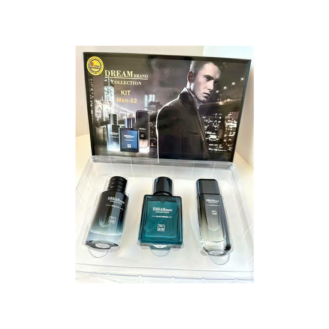 O Dream Brand Collection No-02 Kit Masculino reúne três fragrâncias de 25 ml — 100, 070 e 154 — oferecendo variedade, praticidade e excelente custo-benefício. É ideal para homens que desejam alternar aromas conforme a ocasião, mantendo sempre elegância, presença e versatilidade no dia a dia.