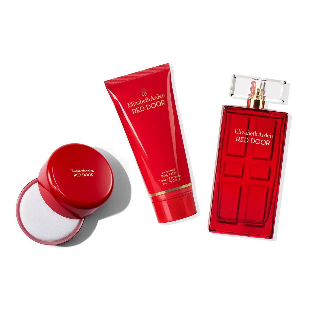 O Kit Elizabeth Arden Red Door reúne elegância, sofisticação e feminilidade em uma fragrância clássica e marcante. Com o perfume de 100 mL, um body lotion hidratante e um pó corporal delicadamente perfumado, o conjunto oferece uma experiência completa de cuidado e luxo.
