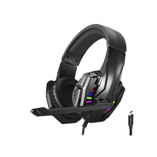 FONE C/ MICROFONE SATELLITE GH-402 GAMING RGB TYPE C PRETO