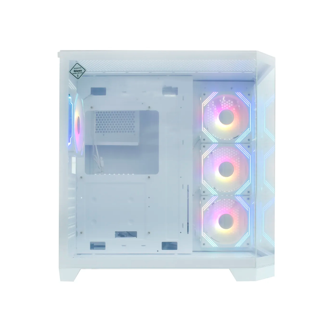 A linha K‑Series da Satellite foi concebida para oferecer gabinetes gamer com design moderno, vidro temperado e boa ventilação a preços acessíveis. O modelo K903 eleva esses conceitos ao trazer quatro ventoinhas ARGB inclusas, painel frontal com malha ou mesh para melhor fluxo de ar, e acabamento branco que combina tanto com setups clean quanto com rigs mais chamativos.