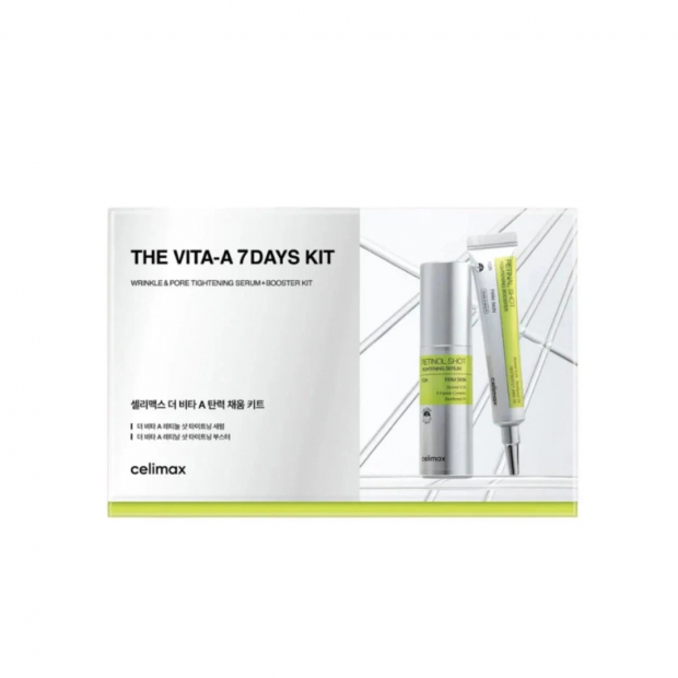 O Kit Facial Celimax The Vita-A 7 Days Anti-Age Booster é um tratamento intensivo desenvolvido para revitalizar a pele, melhorar a textura e auxiliar na redução dos sinais de envelhecimento. Formulado com ativos derivados da Vitamina A, o kit atua na renovação da pele, promovendo aparência mais firme, uniforme e luminosa em apenas 7 dias de uso contínuo.