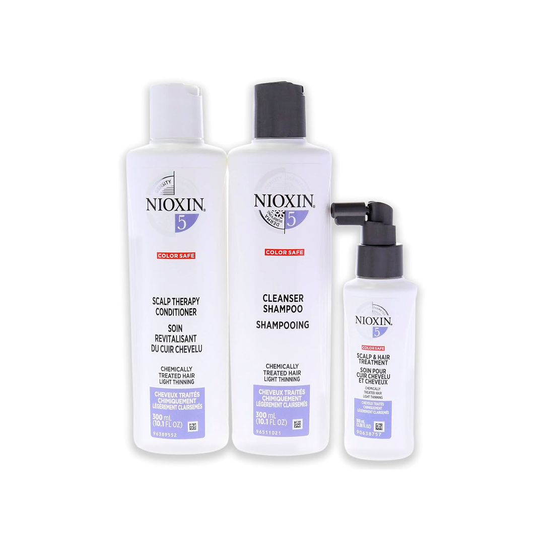 O kit Nioxin 5 Color Safe (Shampoo 300 ml + Condicionador 300 ml + Máscara 100 ml) é um tratamento capilar profissional indicado para cabelos com coloração e afinados. Sua fórmula fortalece os fios, protege a cor e promove um couro cabeludo mais saudável, deixando o cabelo com aparência mais densa, limpa e revitalizada.