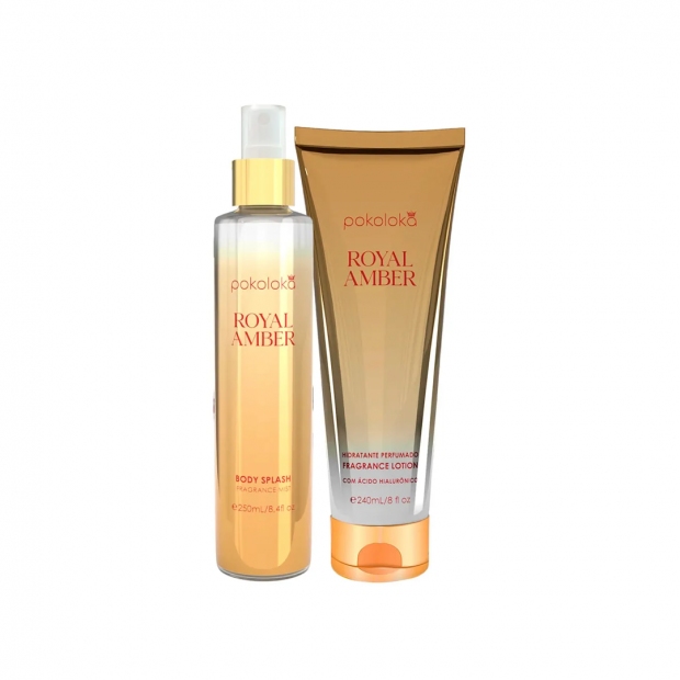 O Kit Pokoloka Royal Amber combina uma splash de 250ml com uma loção corporal de 240ml, oferecendo uma fragrância marcante inspirada em notas ambaradas e hidratação suave para a pele. Ideal para quem busca um aroma elegante e duradouro no dia a dia.