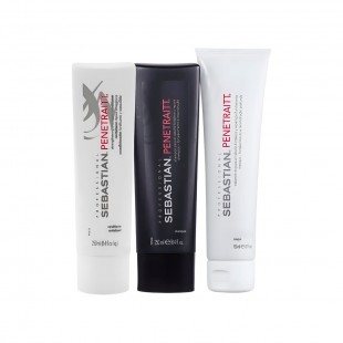 O Kit Sebastian Penetraitt Shampoo 250 ml + Máscara 150 ml foi desenvolvido para tratamento de reparação intensiva de fios danificados ou quimicamente tratados. O conjunto oferece limpeza suave, reconstrução e fortalecimento da fibra capilar.
