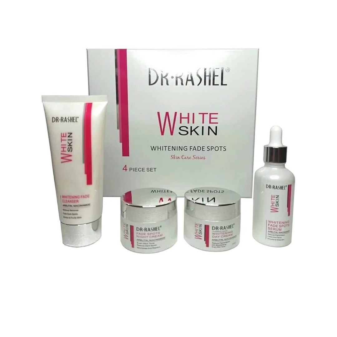 Este kit faz parte da série “Whitening Fade Spots” da DR RASHEL, modelo DRL-1556, voltado para pessoas que buscam reduzir áreas de pigmentação irregular e manchas na pele. A proposta é oferecer uma rotina completa de tratamento em casa para promover tom mais uniforme e luminosidade.