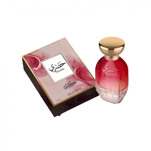 Kunooz Hasri foi criado para representar a feminilidade moderna que equilibra delicadeza e intensidade. Inspirado na ideia de exclusividade suave — um aroma que abraça, destaca e encanta — o perfume une riqueza oriental leve com um toque contemporâneo. Seu conceito gira em torno da mulher que busca um aroma elegante, doce e confortavelmente marcante, transmitindo presença impecável sem exageros. A fragrância traduz calor, charme e refinamento, tornando-se uma assinatura perfeita para quem deseja doçura equilibrada e sofisticação diária.