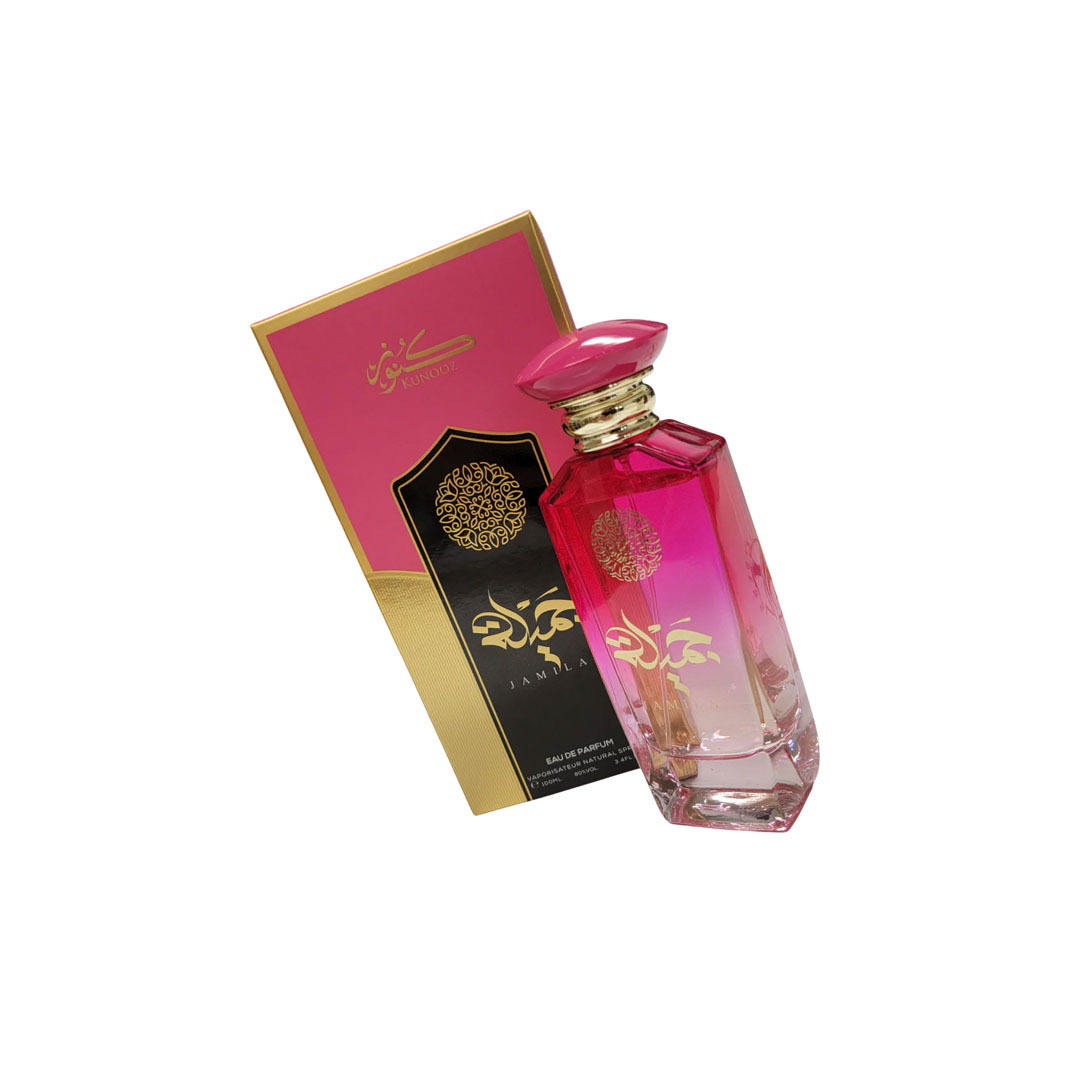 Kunooz Jamila 100ml EDP é uma fragrância feminina envolvente e sofisticada que combina notas florais, frutadas e adocicadas criando um aroma elegante, marcante e ideal para mulheres que apreciam perfumes intensos e femininos