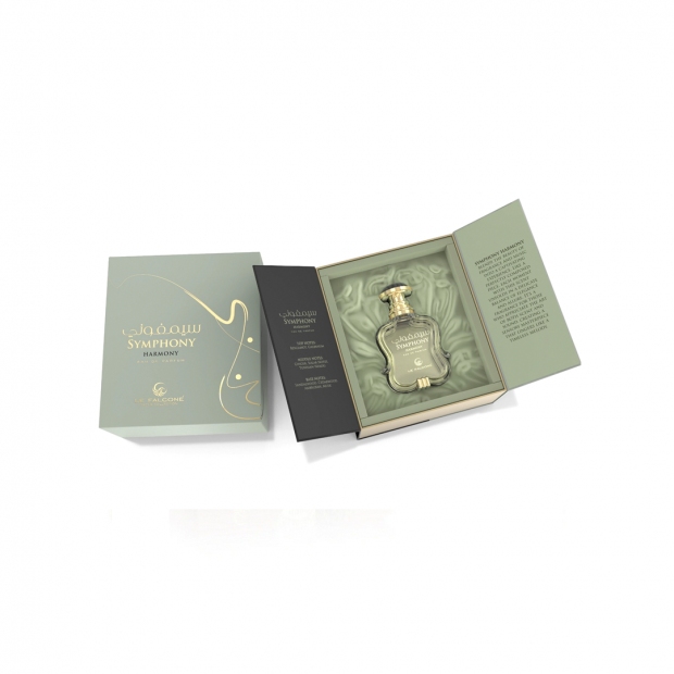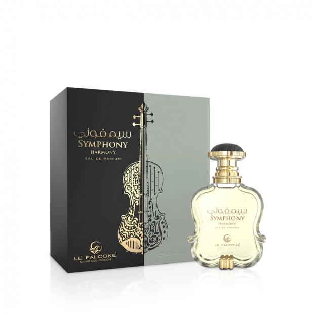 Le Falcone, uma marca dos Emirados Árabes, inspira-se na nobreza e poder do falcão ("Falcone"). A linha "Symphony" explora a arte de combinar notas olfativas como uma orquestra harmoniosa. "Harmony" é a peça central desta sinfonia, representando o equilíbrio perfeito entre o frescor frutado e a profundidade ambarada. É uma melodia olfativa que busca recriar a sensação luxuosa e frutada de Erba Pura (Xerjoff / Sospiro).