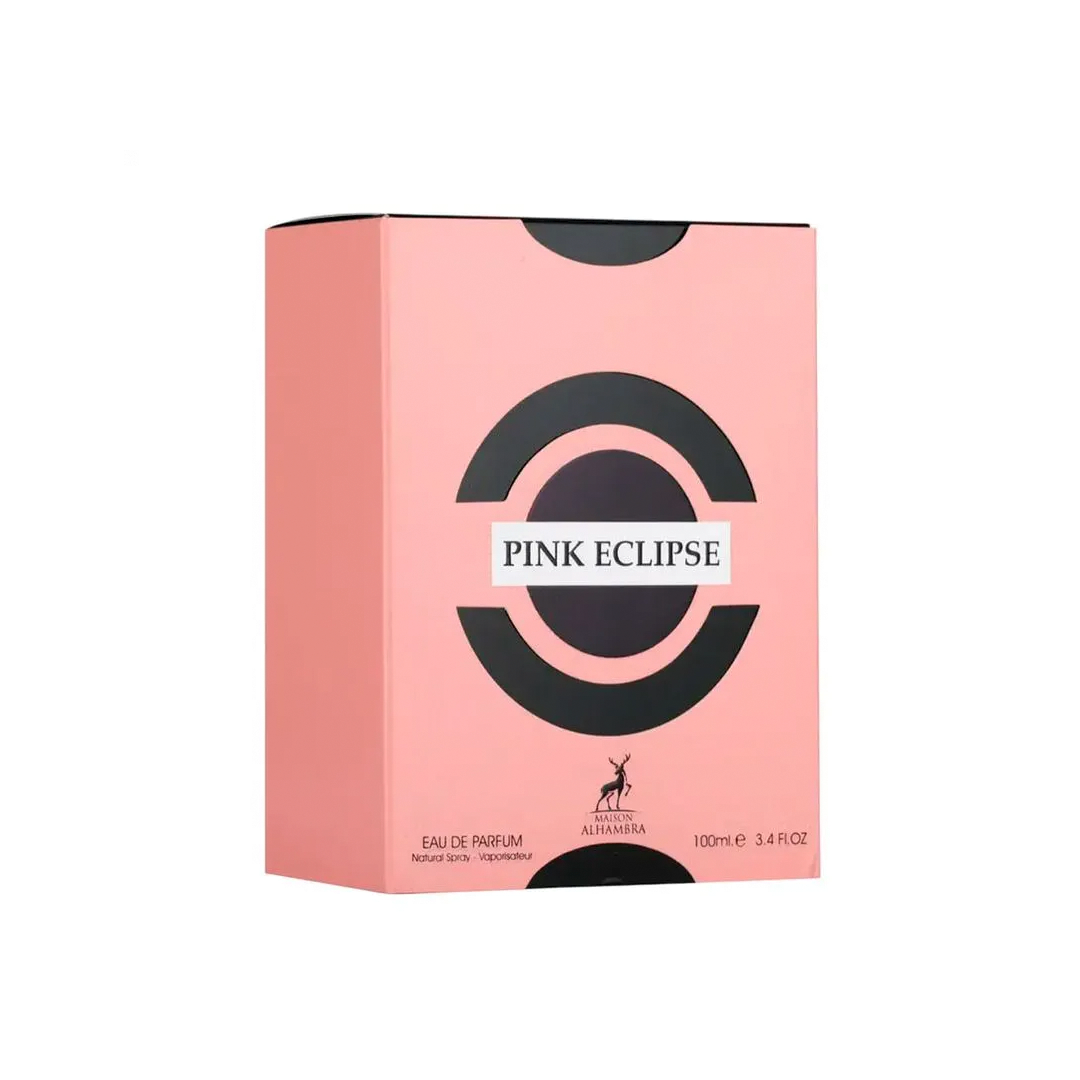 Pink Eclipse é lançado pela Maison Alhambra como parte da linha que revisita o luxo oriental-moderno, oferecendo uma fragrância que abre com frutas e cítricos vibrantes, evolui para coração floral e finaliza com uma base quente de baunilha, âmbar e almíscar. Segundo avaliações, essa fragrância traz notas-chave de bergamota, tangerina e pêra no topo; jasmim, neroli e flor de laranjeira no coração; e baunilha, âmbar e almíscar na base.