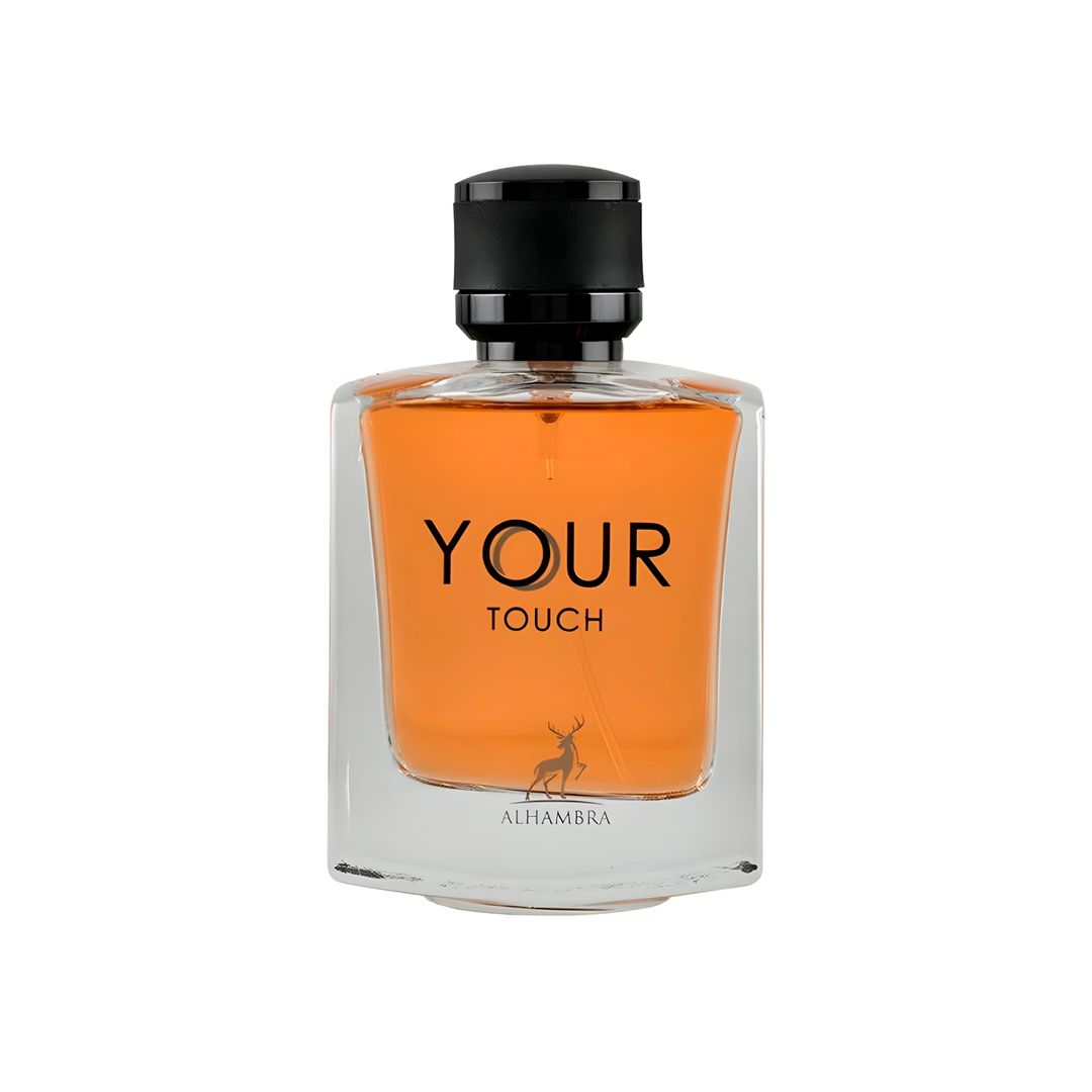 Maison Alhambra (parte da Lattafa Perfumes, dos Emirados Árabes Unidos) é renomada por criar fragrâncias luxuosas e de alta qualidade, frequentemente inspiradas nos maiores sucessos da perfumaria mundial. O conceito de "Your Touch" explora a conexão íntima e a atração magnética. A versão "Extrait" (embora classificada como EDP) intensifica essa proposta, sendo uma interpretação poderosa e rica do aclamado perfil olfativo gourmand-boozy com castanha e baunilha, popularizado por Emporio Armani Stronger With You Absolutely.