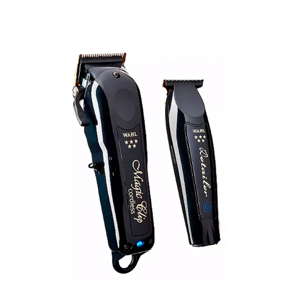 O Wahl Magic Clip Cordless Barber Combo combina duas máquinas sem fio de alto desempenho — a Magic Clip Cordless para cortes gerais e a Detailer Li Cordless para acabamentos e linhas precisas. A versão preta com acabamento premium é ideal tanto para barbearias como para profissionais exigentes que buscam resultado impecável.