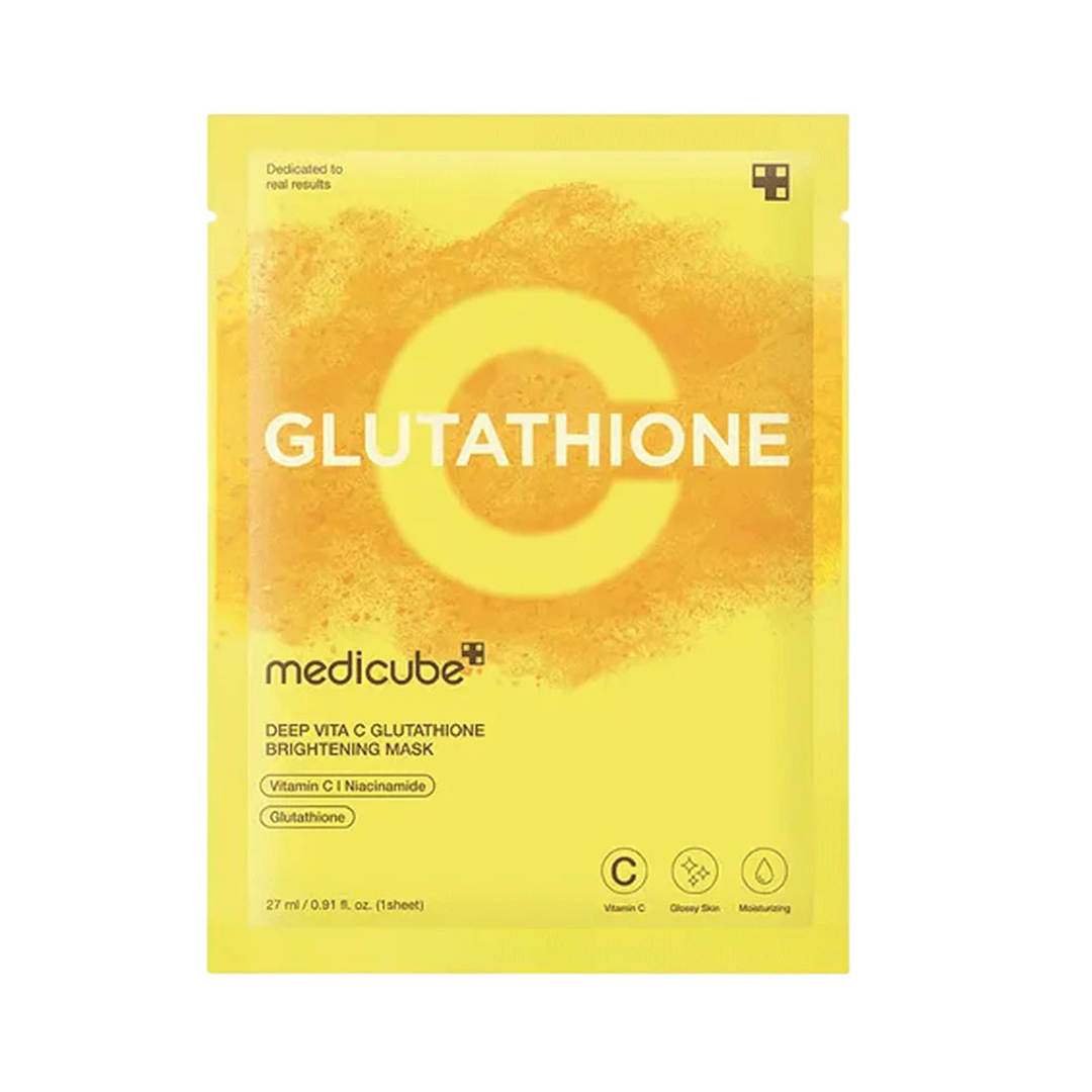 A máscara facial Medicube Deep Vita C Glutathione foi desenvolvida para iluminar e revitalizar a pele cansada e sem brilho